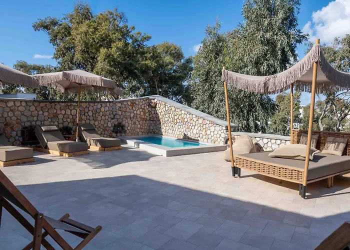 Lejlighed ligger i Vóthon, 5 minutters gang fra centrum. Med bil er der 15 minutters køretur til Skaros-klippen. Inden for 5 minutters gåtur kan gæsterne spise i To Paradosiako og Sergena. Denne Pithos giver nem adgang til Argyros Mansion.